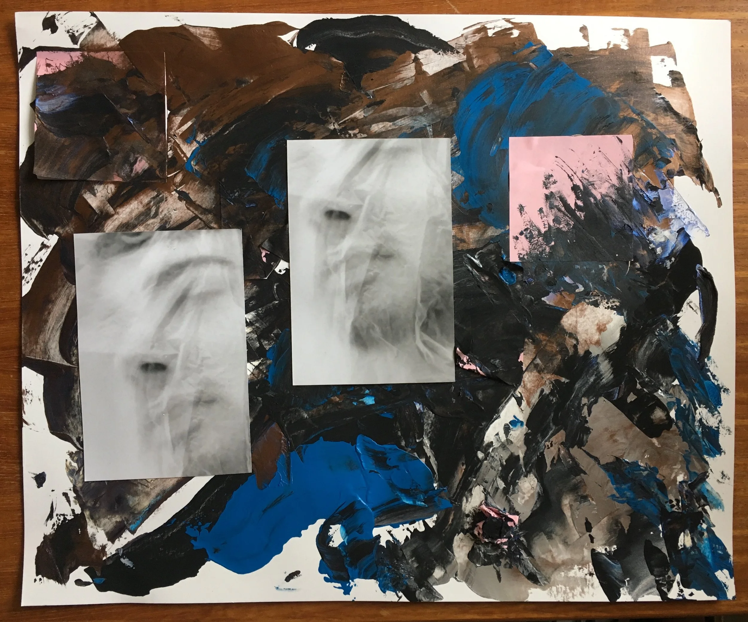 “Going Places,” Acrylic, Silver Sharpie, Pen & Ink, Tracing Paper, Glue ‘Varnish’ and Polaroid on Cardboard. Artwork for the 2021 album of the same name by Dozens of Cousins.